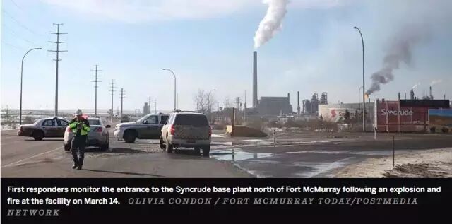 在今天的新闻发布会上,爆炸原因已经出来了。Syncrude公司的发言人说,生产线出了问题,导致石脑油泄漏了,而石脑油是一种高度可燃的化合物,石脑油燃烧引发了爆炸。。。