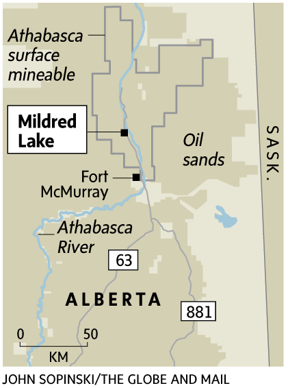 爆炸发生在麦堡北部40公里的地方,Syncrude公司位于Mildred Lake的油田。具体地理位置如下: